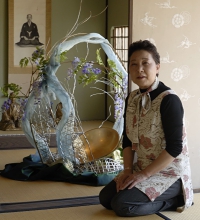 町並みや川の中、自然の中にお花を生けています。 その空間がよりいっそうすばらしい場となり、花が一番美しい姿でとけこむように、花の「命」「力」をもらいながら、その場との対話を大事に作品作りを行っています。